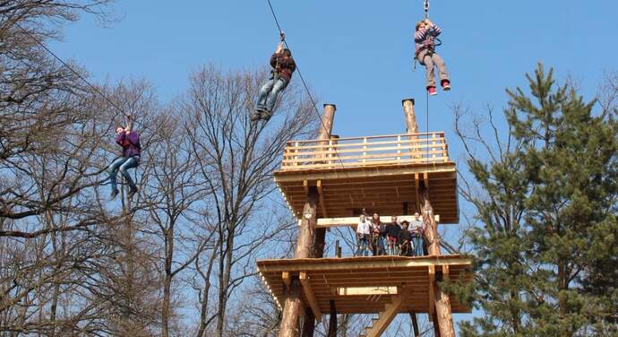 Experience adventure in Geneva's nature at Parc Aventure des Evaux. From age 3, tackle 12 treetop courses, including 3 giant zip lines, for unforgettable family or group fun.
