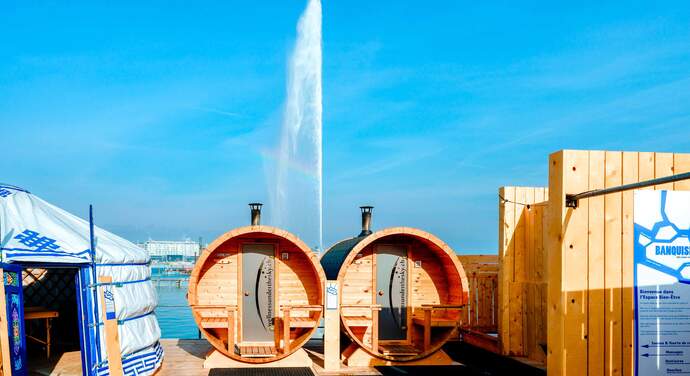 La Banquise brings winter wellness to the lakefront: wood-fired saunas with Jet d’Eau views, curling mats, chill-out zones and hot drinks for cosy afternoons in the city.