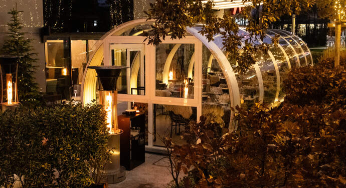 Cheese with a view! La Capsule blends Swiss fondue with sleek design in a glowing glass tunnel. A winter dining gem under Geneva’s night sky.