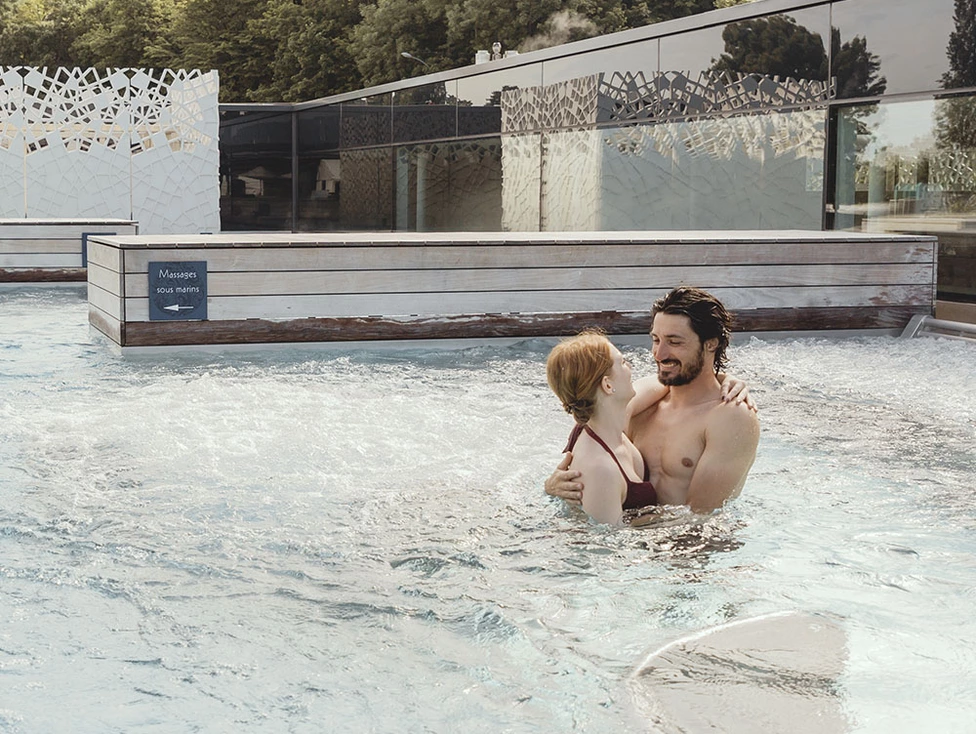 Eaux chaudes, bulles et vue sur la ville. Lits à remous sur le toit, hammam et espaces pour ralentir à deux. Un moment de...